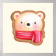 Une affiche avec un joli visage d'ours sur une base de biscuits. Portant un foulard rayé rouge et blanc.