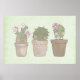 Une affiche au design fantaisiste. 3 cactus mignons tous dans une rangée avec des visages souriants assis dans un pot à fleurs chacun portant des bijoux.