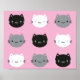 Kawaii chats et chatons noirs, blancs et gris sur un arrière - plan rose bébé.