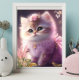 Poster Cute Chat Kitten en Robe violette Florale Art Nurs