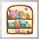 Illustration adorable de jouets monstre dans une étagère. Parfait pour le décor de votre enfant et de votre crèche. Illustré et dessiné par Patricia Alvarez.