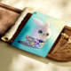 Embrace the awakening of nature with the Spring Guardian illustration. Featuring a fluffy white bunny with big, sparkling eyes peeking out from a colorful floral bowl, this artwork captures the magic of spring. a perfect addition to a nursery, child's bedroom, or as Easter decoration. A piece for animal lovers and fans of cute, kawaii art .The mood is cheerful and whimsical.