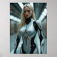 The pinnacle of futuristic beauty, showcasing flawless synthetic skin and elegant chrome armor details.