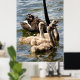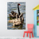 Un cygne noir garde ses jeunes cygnets sur un lac en fin d'après-midi