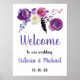 Boho d'aquarelle violet Floral Bienvenue à notre affiche mariage avec la couleur de la saison ultra violet