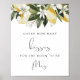 Cette pancarte de jeu de douche de mariée combien de baisers comporte des citrons aquarelle associés à une police manuscrite amusante. Modifiez *la plupart* du texte pour l'adapter à votre style et à votre thème. Utilisez ce modèle pour modifier les polices, la couleur de police et la couleur d'arrière-plan en fonction des besoins de votre événement.