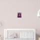 Whimsical poster featuring a portrait of a wide-eyed girl with cascading purple curls, a berry-and-flower crown, rosy cheeks and a daisy patterned dress on a mauve backdrop. Finished in a oil acrylic impasto painterly style.
