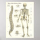 Affiche anatomique montrant les os du squelette humain avec les détails des vertèbres. Vue individuelle des vertèbres cervicales, thoraciques et lombaires avec des repères.