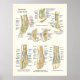 Anatomie de l'affiche du pied. Huit images créées avec une image vintage montrant l'anatomie superficielle et profonde du pied et de la cheville. Les images montrent : les muscles et les gaines de tendon sur le dorsum du pied gauche; les artères et les os du dorsum du pied gauche et de la cheville; les gaines de tendon et les muscles de la région interne du malleus; et les couches superficielles et profondes des semelles du pied droit.