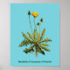 Illustration botanique d'un Dandelion (Taraxacum officinale). Le texte personnalisable "Dandelion (Taraxacum officinale)" apparaît également. Vous pouvez modifier à la fois la couleur arrière - plan et la couleur du texte. Le nom anglais du plante commun et largement répandu est probablement dérivé de français "dent de lion" signifiant "dent de lion", se référant aux feuilles aux dents grossières. Le dandelion est utilisé depuis longtemps à des fins médicales. Il s'agit d'un remède traditionnel à base de plantes pour les infections et les problèmes hépatiques, et comme diurétique.