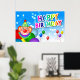 Joyeux anniversaire avec ballons clowns et autres ballons colorés poster.