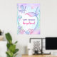 Posters d'anniversaire à thème nautique illustrant les fonds marins, pieuvre mignonne, adorable méduse et une queue magique de sirène.