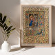 Faites preuve d'une élégance intemporelle et d'une résonance spirituelle grâce à notre affiche Vintage d'Annonciation Illuminée. Cette oeuvre d'art exquise saisit le moment sacré de l'Annonciation, mettant en vedette la Vierge Marie et l'Ange Gabriel dans une illustration classique rappelant les manuscrits médiévaux. Ornée d'une vintage frontière éclairée, qui puise ses influences perses et victoriennes, l'oeuvre est complétée par de riches accents dorés en feuille de papier qui apportent un brillant divin à la scène. Conçu pour la contemplation et l'admiration, ce poster est parfait pour ajouter une touche de grâce et d'histoire à votre maison, bureau ou lieu de culte. L'utilisation de couleurs vintages confère à la pièce un air d'authenticité, tandis que l'or de feuille ajoute une touche moderne au design par ailleurs classique. C'est plus qu'une affiche ; c'est un morceau d'histoire et de dévotion, réinventé pour les espaces contemporains.