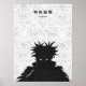 A black and white silhouette artwork inspired by dark anime and sorcery themes, featuring a mysterious figure surrounded by a cursed and ominous aura. Perfect for fans of dark fantasy, anime aesthetics, and bold minimalist wall decor.