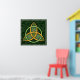 Un design original Celtic Trinity Knot, en vert et or, décoré avec des nouages plus celtiques et encadré sur un champ de vert.