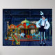 Le cirque Abstrait coloré Freaks Clown Art. Cet art est un géant clown et un squelette qui joue de la harpe pour le carrousel.