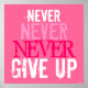 N'abandonnez jamais. Art Motivationnel. Design Par Elke Clarke ©2010. Customisez avec votre choix de couleurs. Idéal pour les bureaux et les espaces de travail. Art d'affiche motivant mais tendance. À la GALERIE MONOGRAM, nous aimons utiliser les lettres pour créer des designs agréables. Pour le défi d'affiches de Zazzle, nous pensions que nous prendrions en compte l'économie et l'année écoulée dans l'élaboration de notre design. L'expression n'est pas nouvelle mais l'affichage graphique et le message prévu résonne plus que jamais avec nous tous. N'Abandonne Jamais !