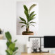 L'art Wabi-Sabi d'un plante vert en pots avec de larges feuilles debout contre un arrière - plan blanc clair. Le pot plante est fait d'un matériau brun clair et rempli de sol.