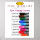Poster d'alerte sanitaire anti-Vaping Drug Education from Public School Zero Imagined "New Vaping Flavors" souligne avec humour les dangers de la vapeur : dommages pulmonaires, boutons, gingivite, convulsions, carie dentaire. Un produit d'une association d'écoles imaginaires