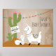 Une affiche baby shower illustrant une maman et un bébé lama debout près d'un cactus avec la bannière "C'est une fille". Personnalisez le nom. Des invitations assorties à la douche pour bébé et des articles de coordination sont disponibles chez Jill's Paperie.