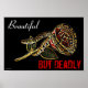 Un serpent Python à bille courbé autour d'une affiche Rose rouge et or pour les amateurs de serpent.collection de beauté dangereuse. idée cadeau.