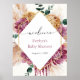Bienvenue dans votre baby shower avec cette belle affiche, avec de l'herbe de pampas aquarelle et des bouquets de fleurs bordeaux séchés entourant un cadre doré. Ajoutez le nom et la date de la douche de la mère à l'aide des champs fournis.