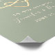 Elégante, moderne, minimaliste, sauge verte mariage bienvenue affiche avec faux coeur de corde or et simple écriture calligraphie manuscrite.