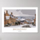 Affiche de style Chemin de fer vintage avec Broadway dans la neige, Cotswolds, Worcestershire, Angleterre.