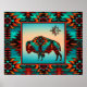 Éclairez votre maison avec cette unique "Poster d'un genre de Buffalo du sud-ouest! Il comprend une silhouette et un soleil de Buffalo Sud-Ouest sur un Arrière - plan de soleil Turquoise et Orange...Entouré d'une frontière Sud-Ouest en Turquoise, Orange & Noir! C'est un "One of a Kind" Art Design original par l'artiste Kerry Miller.