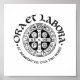 Une affiche inspirante avec l'imprimé de la calligraphie à la main de A.R. Danziger de la devise de saint Benoît et le dessin d'une médaille de saint Benoît. L'écriture unciale dit "Ora et Labora" (prière et travail) et "St. Benedicte, ora pro nobis" (saint Benoît, priez pour nous).