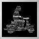 La forme d'une personne sur un scooter à moteur fait de mots liés à la vie de voyage et de scooter.