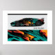 Affiche illustrée avec une photo d'une voiture sport de course élégante. Montré dans le papier à poster mat Value, mais vous pouvez mettre à niveau et customiser. Customisez ou achetez comme indiqué. Image stock freepik.com
