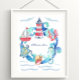 Détendez-vous pour une aventure océanique dans la pépinière de votre enfant. Ce joli thème nautique présente des créatures sous-marines vives aquarelles, des bateaux, des phares et d'autres merveilles balnéaires favorites. Changez facilement pour votre propre nom et, si vous le souhaitez, changez même le style de police, la taille de couleur et le placement.