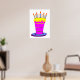 Un gâteau d'anniversaire géant avec givrage dégivrant rose et jaune et bougies bleues brillantes.