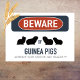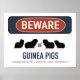 Poster Guise de Cochon de Guinée Cette drôle d’affiche de la bière de cobaye fera sourire vos invités et vos cobayes. C'est un grand ajout à n'importe quel foyer de cobaye. Grand cadeau pour le propriétaire de l'animal de compagnie cobaye. Il présente 4 silhouettes de cobaye noire différentes qui s'élèvent jusqu'au mot rouge cerclé Beware.