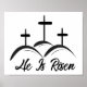Poster de la Bible de Pâques avec croix et tombeau vide et vers de la Bible Typographie réfléchie. "Il n'est pas ici, il s'est levé comme il l'a dit."