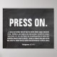 Arrière - plan Chalkboard, poster de vers biblique personnalisé avec Philippians 4:13 avec les mots "Appuyez sur" en gros bloc de police. Cette affiche chrétienne moderne peut être personnalisée. Modifiez le texte à votre passage préféré. "Je presse vers le but de gagner le prix pour lequel Dieu m'a appelé céleste en Jésus Christ."