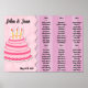 Poster du tableau de sièges à thème de gâteau, texte modèle pour six tables avec nom d'invité.