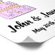 Elégante affiche du tableau des places sur le thème du gâteau de mariage, texte modèle pour cinq tables avec nom d'invité.