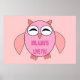 Cette affiche présente un joli dessin d'une chouette rose aux yeux somnolents, un petit bec et de mignons petits pieds. Il y a du texte rose vif dans le ventre des hiboux qui dit, "Owl Always Love you". C'est le cadeau parfait pour montrer à quelqu'un spécial combien vous les aimez.