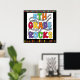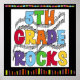 Arrière - plan noir coloré et amusant avec un bord de design coloré, des notes musicales et du texte multicolore qui dit "Rochers de 5e année" sur des affiches de classe de 5e année que l'enseignant aimera!