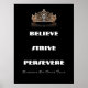 Un arrière - plan noir élégant sur du papier d'affiche de qualité fait un excellent morceau d'oeuvre d'encouragement. Une couronne glamour juive perchée au-dessus de trois mots : Believe Strive Persévère avec une citation de "Dreams do come true". Achetez en l'état ou personnalisez-vous avec le bouton personnaliser ou ajoutez un cadre. Image sous licence