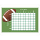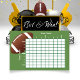 Poster du jeu de football. Modèles de nom d'équipe créés pour vous. Dix lignes et dix colonnes pour les nombres 0 à 9, choisies au hasard pour chaque colonne et chaque ligne**. Il est important qu'une fois que tous les carrés sont remplis avec vos initiales d'invités, les numéros de chaque ligne et colonne sont choisis au hasard. Chaque espace est réservé aux initiales de vos invités. Grand football américain en haut à gauche sur arrière - plan vert. Le jeu est généralement joué avec des joueurs payant pour chaque carré pour l'argent de la piscine ou juste pour les prix fournis par l'hôte. Les gagnants sont déterminés par un dernier chiffre de score, et peuvent être joués après chaque trimestre de jeu (4 gagnants), ou mi-temps (2 gagnants) ou le gagnant prend tout (1 gagnant) à la fin de jeu. Par exemple : l'équipe 1 a 18 points, l'équipe 2 a 27 points...Le gagnant se trouve à la ligne 8, colonne 7.