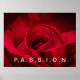 Affiche illustrée avec une photo d'une belle rose rouge avec le texte PASSION. Customisez cet objet ou achetez tel quel.