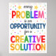 CHAQUE PROBLÈME EST L'OCCASION D'UNE SOLUTION CRÉATIVE ! Faites réfléchir les étudiants/clients avec cette affiche réfléchie, lumineuse et joyeuse. Une affiche élégante et géniale en classe/bureau de conseiller pour inciter les élèves à sortir de la boîte et à redéfinir le problème de façon à être créatif et à trouver une solution ciblée ! Un grand poster à accrocher dans une classe du collège ou du lycée. Aussi une excellente affiche pour les bureaux de conseillers en orientation scolaire, les bureaux principaux, les thérapeutes ou les psychologues pour rappeler aux enfants et aux ados qu'il s'agit de perspective et qu'ils ont maintenant les capacités de changer leur propre vie en cherchant des solutions créatives à leurs problèmes!