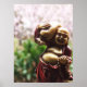 bouddha sourit alors qu'il transporte un sac de grain, tenant ces perles. Gros plan d'une statue de bouddha de miniture
