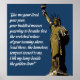 Poster avec la grande Statue de la Liberté et la célèbre citation "Donnez-moi vos fatigués, vos pauvres, vos masses agitées qui veulent respirer libre, les déchets misérables de votre rivage grouillant. Envoyez-les, les sans-abris, je me suis jeté dans la tempête, je lève ma lampe à côté de la porte d'or !"