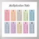 Poster de tableaux de multiplication aux couleurs pastel pour les enfants pour apprendre la multiplication de 1 à 10 de manière amusante. Parfait pour une salle de classe ou une décoration de chambre pour enfants !
