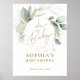 Poster d'Affiche de bienvenue Oh Baby shower Ce magnifique design présente des feuilles d'eucalyptus et de la typographie de l'or. Faites une fête parfaite avec Oh Baby Eucalyptus Baby shower Affiche de bienvenue. Personnalisez avec vos informations ou cliquez sur "Cliquez pour customiser plus loin" pour modifier les styles, la taille et les couleurs des polices.