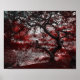 Des fleurs spectaculaires de cerisiers rouges s'écartent d'un vieux chêne